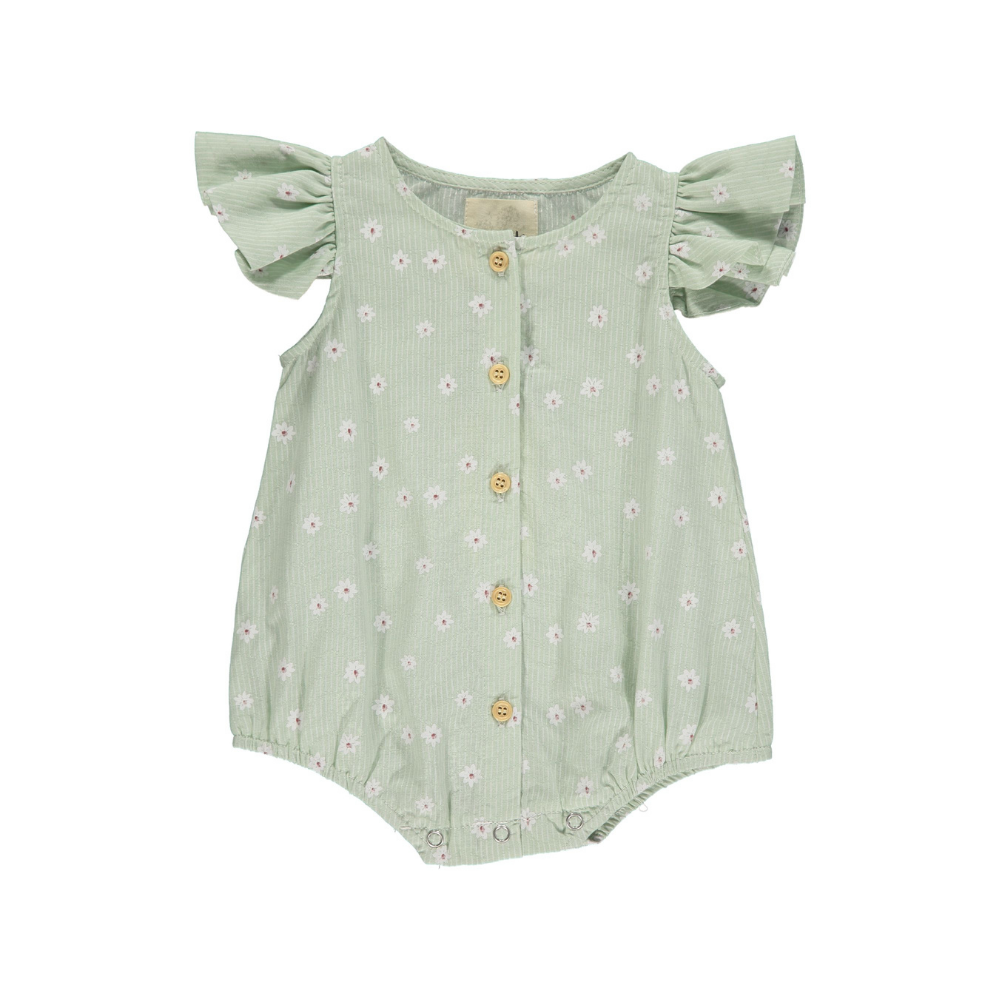 This super sweet floral paired with the angel wing sleeve is so unique and great for a summer day. It features five buttons down the front for extra detailing and easy dressing. This would be a great option for a newborn photoshoot outfit.