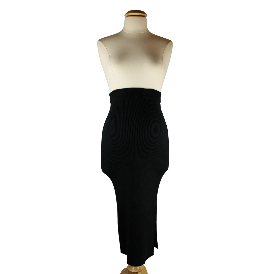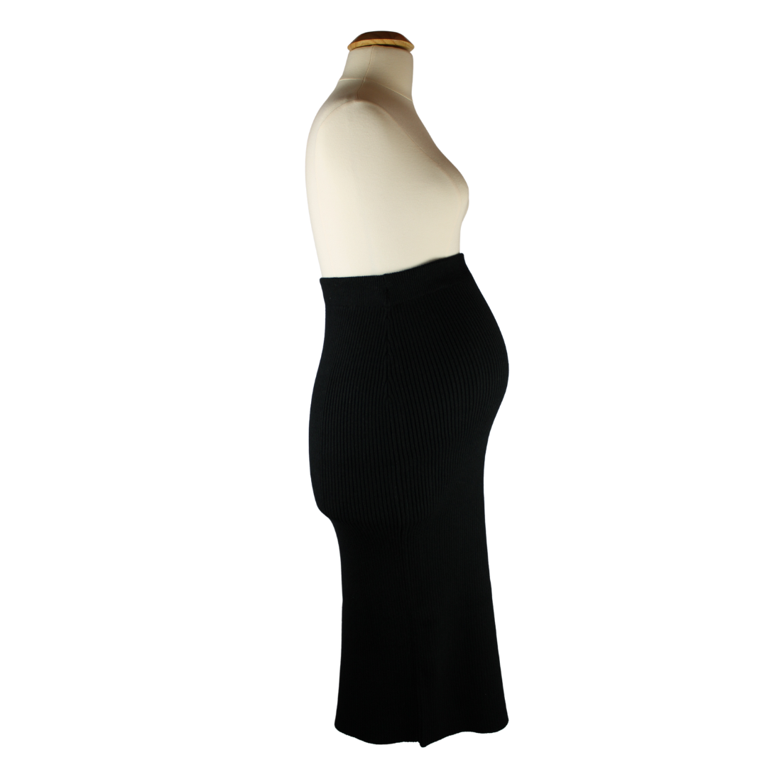 This high-waisted midi skirt is great for dressing the bump. It is stretchy, ribbed and heavy knit for the colder days. It has a slit on the side and would pair nicely with an oversized sweater.